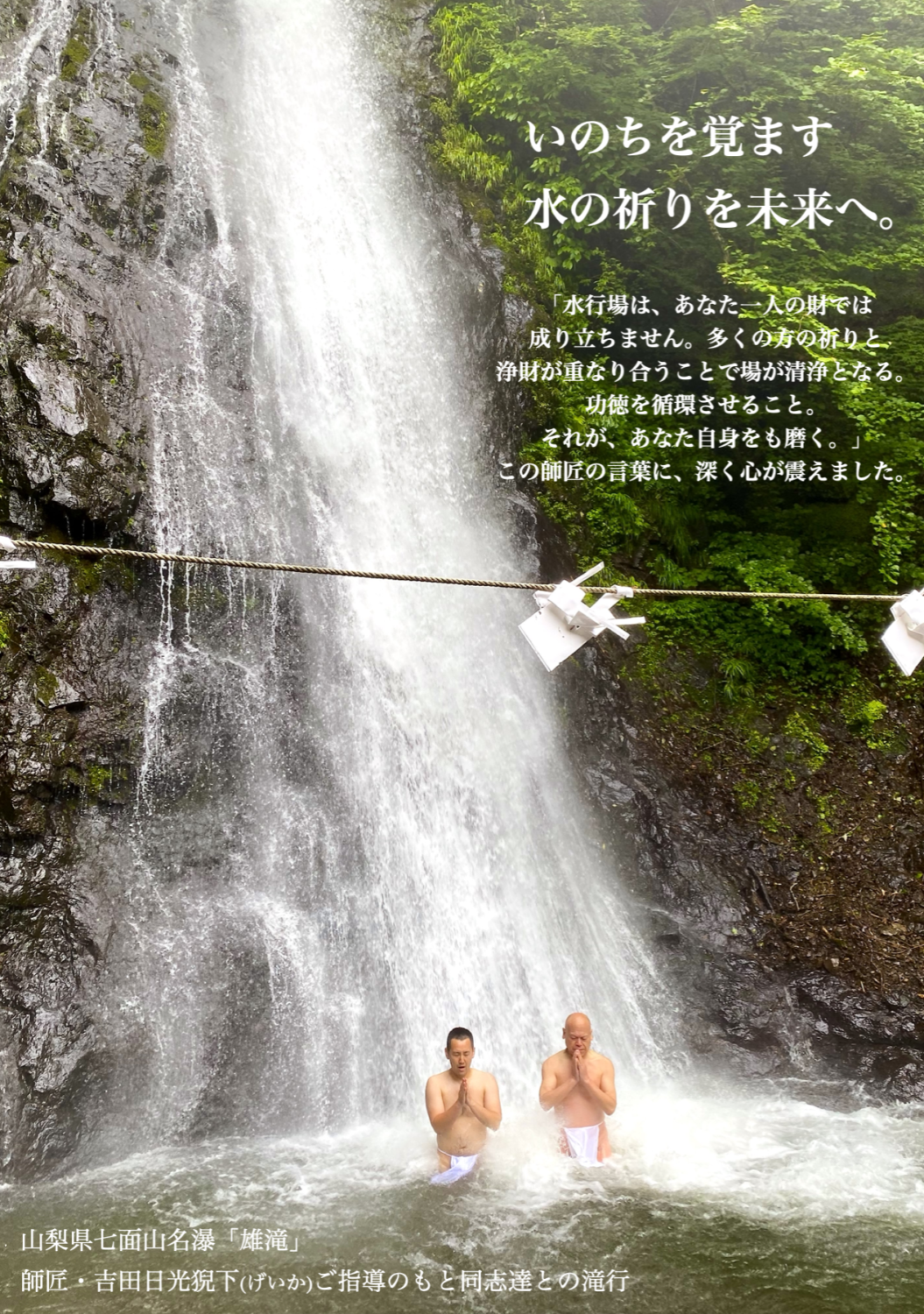ビジョンは、心身魂を清め、遺伝子を駆動し、生命を刷新させる水行場の実現です。